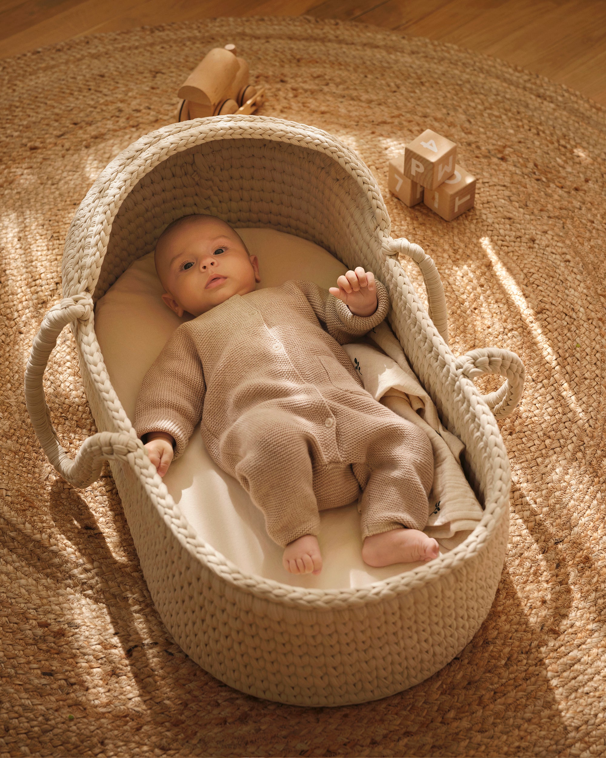 Crafted with Scandinavian design in mind, this carry cot combines practicality with timeless style. Its sturdy handles make it easy to carry around the house, bring along wherever you go, or place next to your bed, giving your little one a familiar and comfortable place to rest while allowing you to check on them easily throughout their sleep. Entirely handwoven from breathable crochet material, it promotes airflow to help keep your baby comfortable and supports natural temperature regulation.